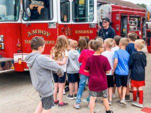 Amboy Fire Dept. visits the elementary school during Fire Prevention Week.